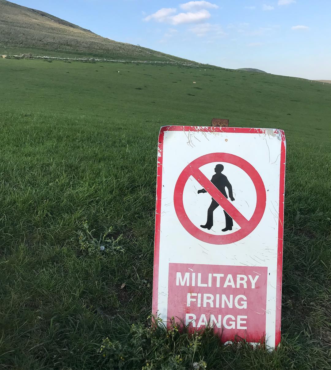 We haven’t had a war in the British countryside for over a year now but our military still like to greedily reserve parts of the landscape so they can shoot at stuff for fun. The rules surrounding these areas can be highly confusing. A case in point being the area above, which I visited this April: walking across it is very much permitted, but should you want to practice your 1970s disco strut in the process? Forfuckingget it, mister. Strictly prohibited.