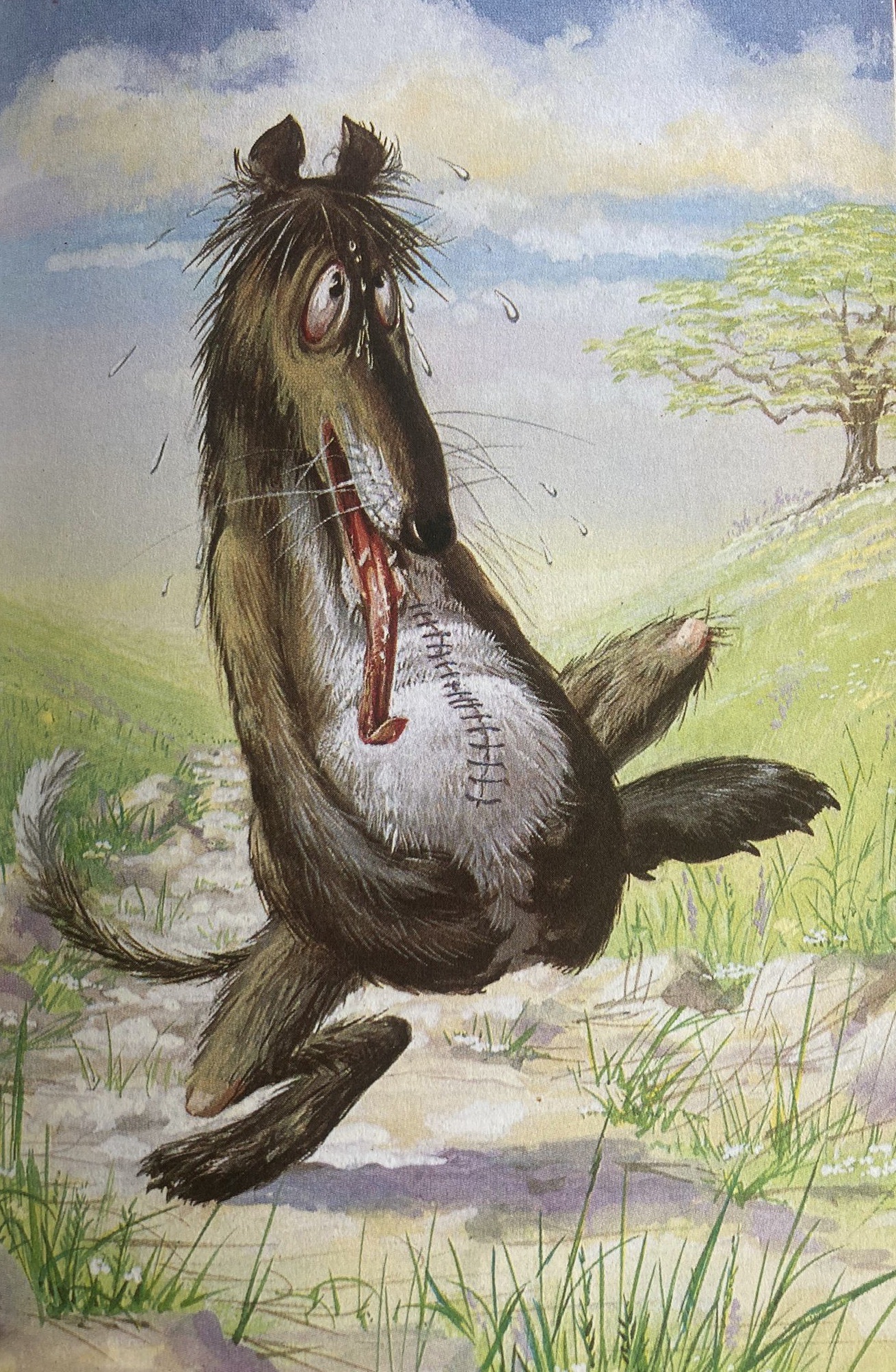 I will say this for the Ladybird Well-Loved Tales of the late 1960s and early 1970s: there is something very “equal opportunities” about them, in terms of the fates of predator and prey. In The Gingerbread Man, the fox got the meal he wanted and walked away happy, but in the breathtakingly dark conclusion to The Sly Fox And The Little Red Hen, a young fox, having been outwitted by a hefty house-proud chicken, pours heavy stones into a pot of boiling water and scalds himself and his mother to instant death. It is hard to decide whether this is even more brutal than the finale to 1969’s The Wolf And The Seven Little Kids, possibly the most unforgettable of all the Well-Loved Tales, where the wolf, having had stones sewn into his stomach by a vengeful mummy goat, falls into a well and drowns.
