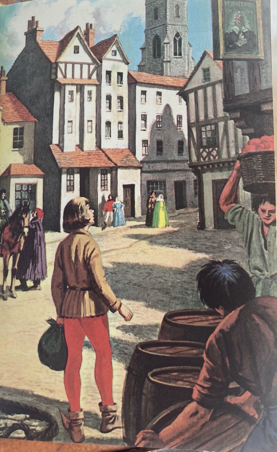 The setting for this story of a poor boy on the make is the late 1300s but in another sense it is a product of the time of its publication, being very 1966 in some ways. With his slightly Small Faces/Herman’s Hermits hair and what is a quite remarkably large selection of kaftans and jeggings for someone on the breadline, Dick has the look of one of those musicians of the British Invasion who, as the hippie era hit, began to move in a more acid folk direction, allowing his songwriting to soak up the influences of Aleister Crowley and Frazer’s The Golden Bough. I enjoyed the look of London here, its half-timbered buildings and cobbled streets, but I have to confess that this was definitely not my favourite of the Well-Loved Tales, either as a child, or on my recent reread.