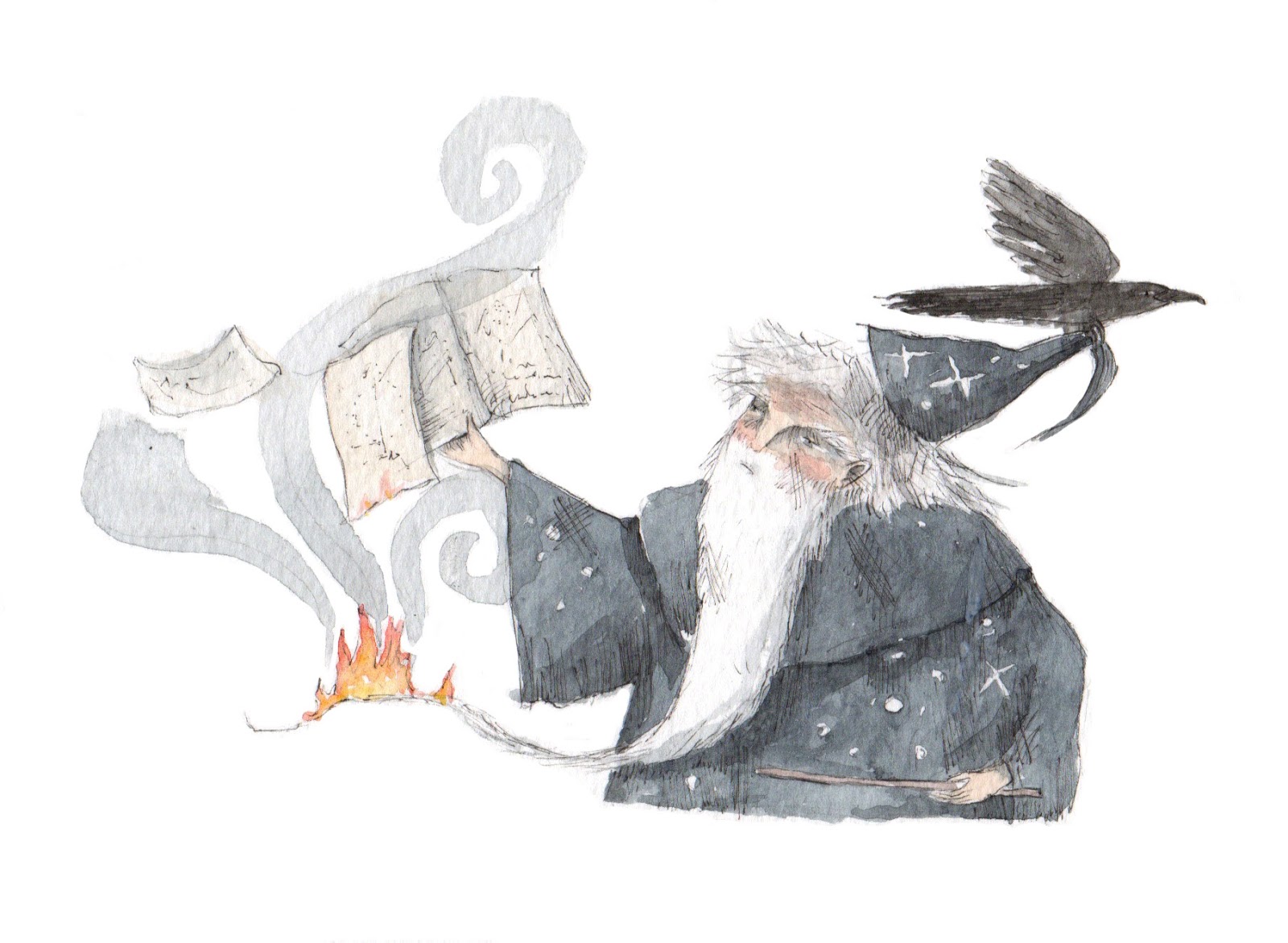 Hapless wizard illustration by Sophie Gilmore. See more of her work