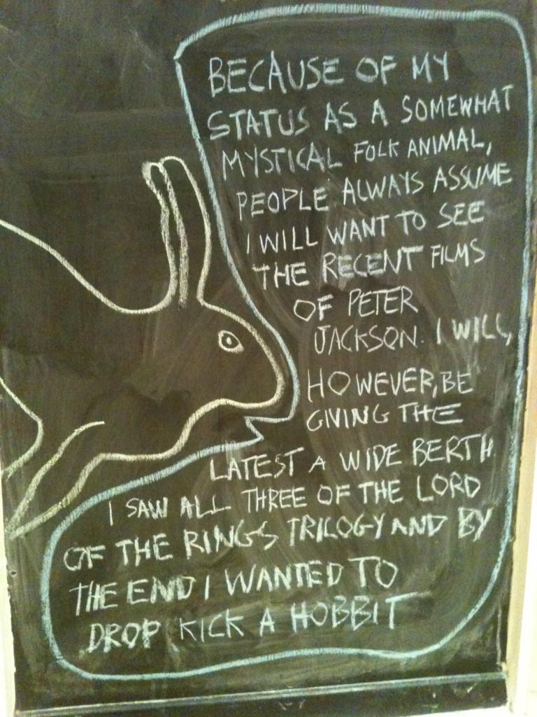 A Few Thoughts On The Current Movie Scene From The Hare Who Lives On The Blackboard In My Kitchen