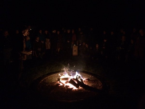 What this is is very South West Peninsula, very uninhibited, very self-mocking. What it should not be is erroneously lumped in with any of the area’s more preposterous hippie excesses. There is no room for air quotes during an occasion like tonight’s: the size of the subject matter will wash them away like violent weather. As I warmed myself on the Sharpham bonfire I felt another kind of warmth that I had never quite felt before at any traditional ceremony dealing with death, a powerful breaking down of barriers, a removing of a certain ugliness. Not the ugliness that’s intrinsic to last rites but an unecessary one often on top of it. Ru talked powerfully - in a way that felt universal, passionate and non-formulaic all at the same time - of the souls we were honouring and autumn’s reminder of nature’s ability to die over and over again. He also asked us to spare a thought for the refugees who would not make it across the Mediterranean, and “whose bodies would never be honoured”. Claire and their colleague Jennifer spoke the names of everyone buried on the hillside and amongst them I heard a familar surname that made my chest stop: that of one of my favourite folk musicians. His son. Dead before him, far, far too young.