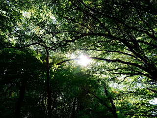 Not much more than a mile away, Hembury Woods seems so benign by comparison, and is a good match for my softer hound, who looks like he's made of wool and moves like he's made of elastic. He pings and twangs ahead of me up what - with the exception of a brutalist feature - is perhaps the forest's one harsh feature: a steep, winding cheststabber of a path leading to the site of an Iron Age hill fort, past myriad stag beetles, for whom wedding season is clearly nigh. Looking up into the green canopy, it is possible to believe that there is more oxygen here than virtually anywhere in England.