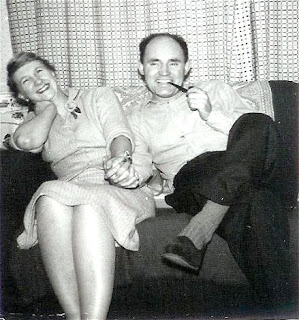 My mum remembers that on her first visit to my grandparents’ house, Ted was wearing a paper party hat. Since it wasn’t Christmas or anybody’s birthday, this confused her, until she found out that making Ted wear the hat was my grandma’s scheme to help him remember that he had to turn their immersion heater off. My own initial firsthand encounter of my granddad’s legendary doziness came when he caddied for me in a junior golf tournament and, arriving on the second tee and reaching for my driver, I found the flag from the first green in my bag. This occurred during the same year that he and Joyce sent a Christmas card to my parents – whose names are Mick and Jo - reading “To Joyce and Ted. Happy Christmas! Love from Joyce and Ted.”