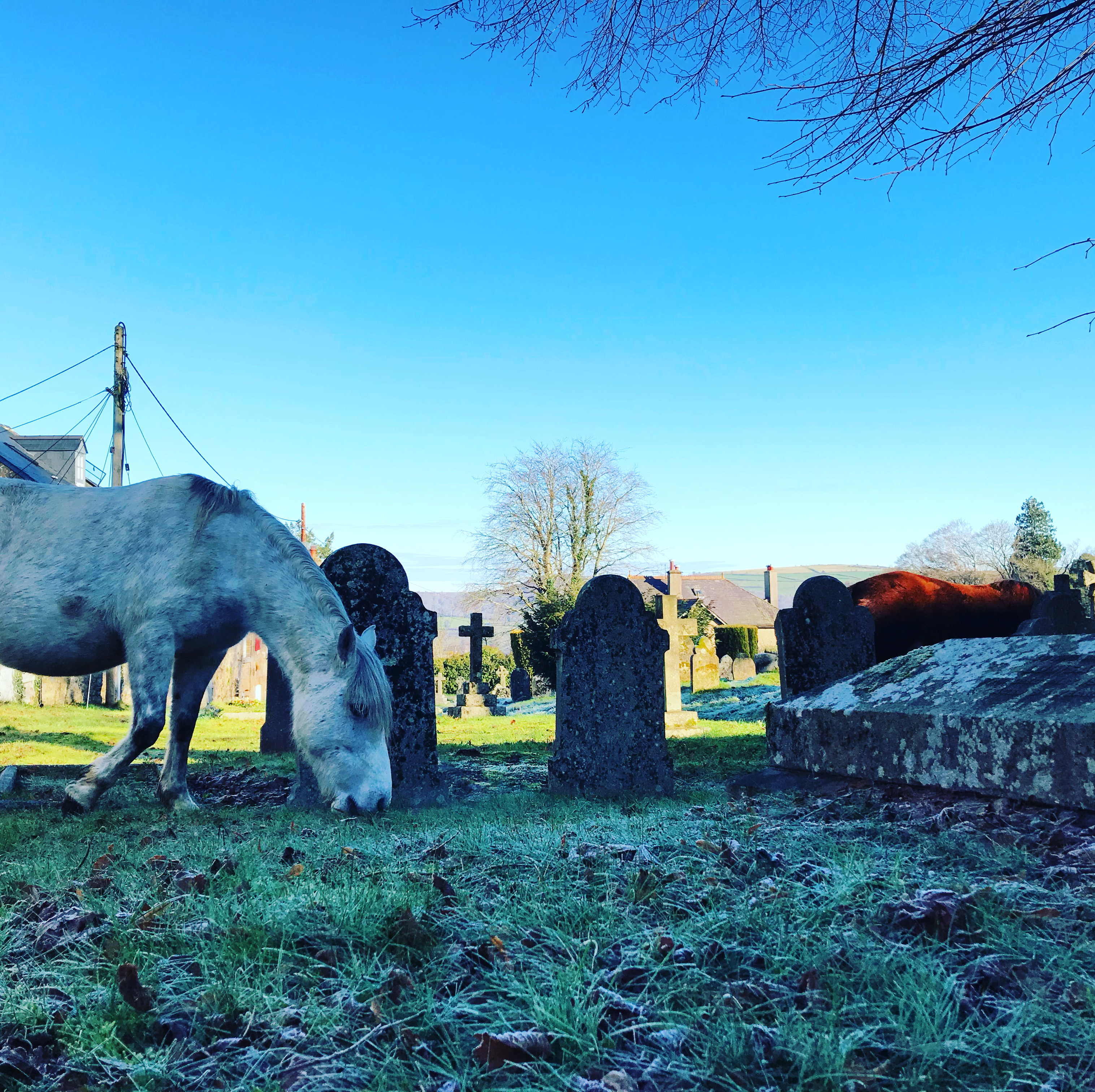 WHY would you allow a pony in a graveyard? Get the damn thing out, right now, and back into a field or trailer. If it eats too much of that grass and soil, it will soon be getting further down and munching on the remains of somebody’s great great great grandma from 1874. Then who will foot the bill for the damage? Have any of you trendy “rewilding” folk thought of that?