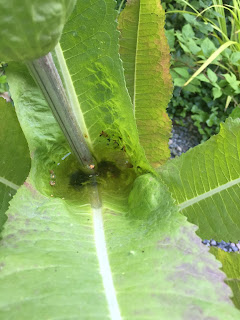 I'm not sure I'm going to be putting a huge amount of the knowledge I picked up from Anna's course to culinary use but, even with that in mind, there's another useful skill to be gained from what's taught on a course like hers: the ability to see through what she calls "the wall of green" that is a west country hedgerow in spring or summer. Since my visit to Sharpham I've started picking more out in that wall, seeing through its muddle of shapes, even in and near my own garden - whether I have the intention of eating some of them or not. A huge teasel growing behind my back fence is no longer just a nondescript weed in the wallpaper of the countryside but a masterpiece of natural bee-friendly architecture with leaves that curve to collect rainwater and provide an organic drinking bowl for blue tits (see above). Strimming in a previously unexplored patch at the far end of my garden the other day and catching a familiar odour, I stopped just in time to rescue a previously undiscovered patch of verbascum and mint, then picked a few leaves of the latter. In the process I was stung by a nettle. Remembering what I'd learned, I did my best to accept the sting. I wouldn't go as far as saying I embraced it, but at the very least I tried to see its point of view. I'd stepped on its patch. It didn't know I was an unthreatening person who liked folk music, badgers and teasels. I could have been Donald Trump, for all it was aware. It was just using what it had available to it, and doing its thing. Just as, a few minutes later, by grabbing some secateurs, ruthlessly ending its life, adding it to some of the mint I'd picked, putting the mixture in a mug and pouring some boiling water over it, I was using what I had available to me, and doing my thing too.Thistle illustration by Sophie Gilmore. See more of her artwork here. Email me via my website if you're interested in getting your artwork featured on this blog.