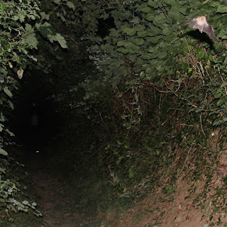 I save a few of these moths from an early death at the hands of various foes - cats, running bath taps, spider webs - but in many cases my efforts will have been futile: over the course of the summer a lot of them will be eaten by bats. Moths are a favourite snack for bats, along with cockchafers, dung beetles and gnats. A pipistrelle bat - the most common breed here in Britain - will eat around 3000 gnats in one night. I know stuff like this because I have been on three guided bat walks in the last three months in the fifty square miles surrounding my house. Most of these have revolved around lesser and greater horseshoe bats: species once common in the south west of Britain, whose numbers dropped dramatically through the 20th Century but have risen again somewhat in recent years. Seventy percent of Britain’s current population of around 10,000 horseshoe bats can be found in Devon. They like the mild climate here, and the hedgerows, which as Anna, a member of Devon’s Wildlife Trust’s Greater Horseshoe Bat Project, told me, “make for excellent bat commuter tunnels.”